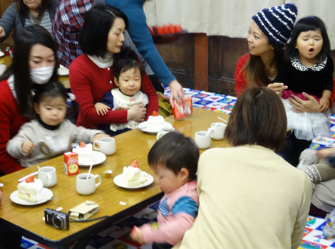 最後はみんなで記念写真を撮り、生ケーキを食べ、今年も楽しいクリスマスパーティとなりました。
