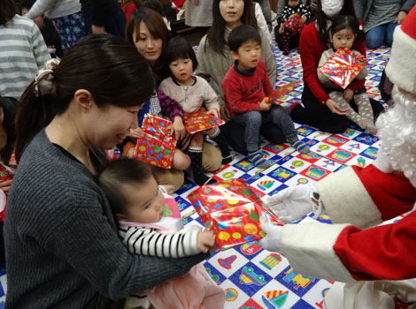 やさしい声で1人1人にプレゼントを渡してくれます。
